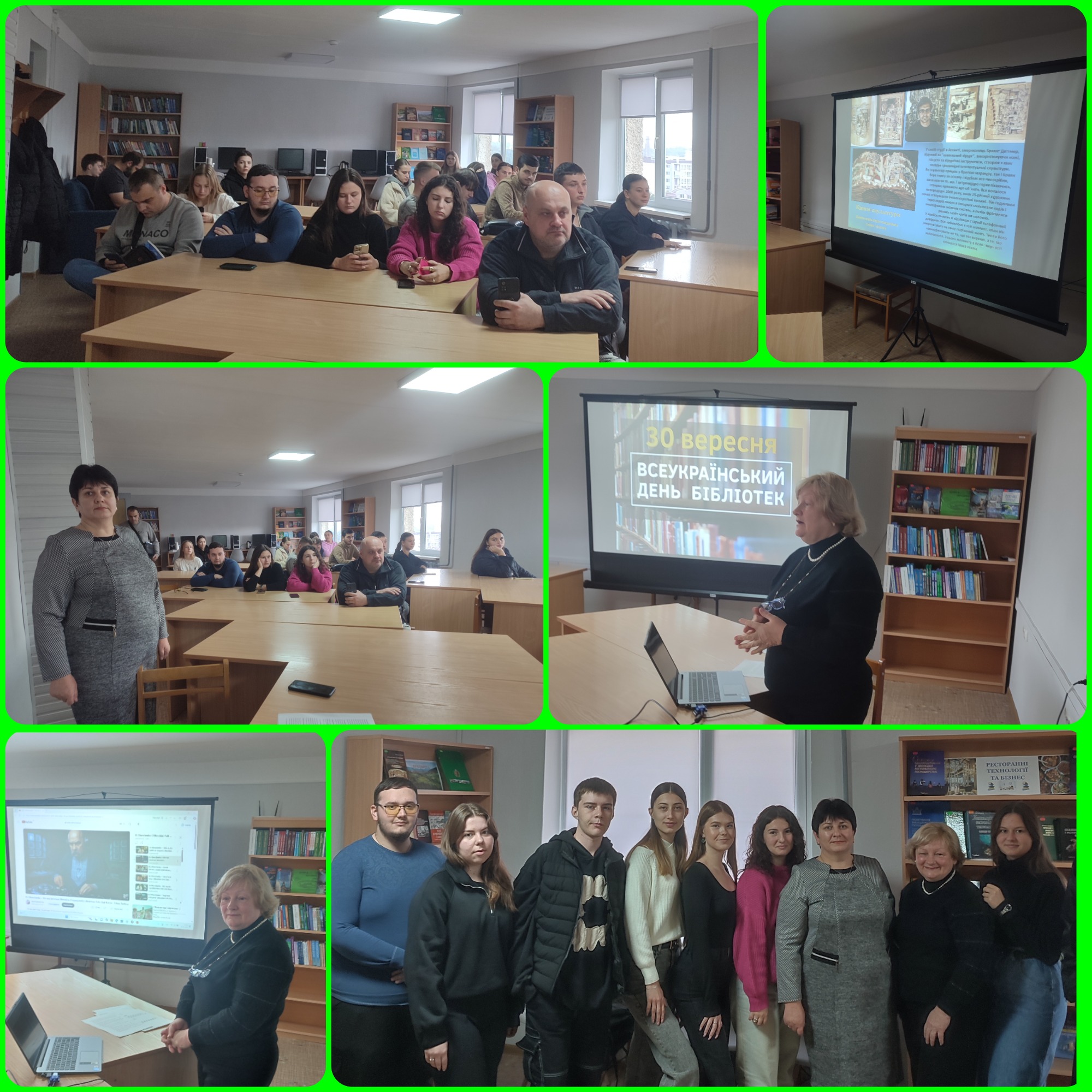 Розкриваючи бібліотеку як відкритий і безмежний інформаційний світ, справжню скарбницю, що зберігає в собі пам’ять та мудрість народів, провідний бібліотекар Надія Яремівна Швайчук розповіла про унікальні й особливі книги. Також студенти здійснили віртуальні подорожі «Незвичайні бібліотеки світу» та «Пам’ятники книгам у різних країнах світу», під час яких учасники «відвідали» Прагу, Лондон, Париж, Ватикан, Нью-Йорк та інші культурні центри, де зберігається безцінна духовна спадщина людства.