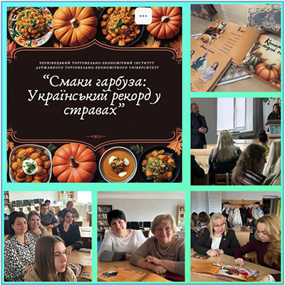 18 листопада 2025 року в читальному залі бібліотеки ЧТЕІ ДТЕУ (вул. Руська, 194 «Д») відбулася презентація унікальної книги рецептів «Смаки гарбуза: український рекорд у стравах». Чудове, яскраве, вишукане видання містить 454 рецепти страв з гарбуза та розкриває історію благодійного фестивалю-ярмарку «Свято гарбуза» в Чернівецькому торговельно-економічному інституті. Книга, підготовлена колективом авторів: А. А. Вдовічен, О. Г. Вдовічена, К. В. Паламарек, Н. В. Шупрудько, передає любов до кулінарних українських традицій і сучасних ідей у приготуванні страв з гарбуза. Зібрані цікаві рецепти надихають на кулінарну творчість та свідчать про їхній практичний характер.