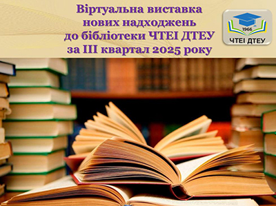 Запрошуємо ознайомитись з віртуальною виставкою друкованих видань, що надійшли до бібліотеки ЧТЕІ ДТЕУ у третьому кварталі 2025 року. Виставка містить фото, бібліографічні описи та анотації книг, які поповнили фонд бібліотеки.